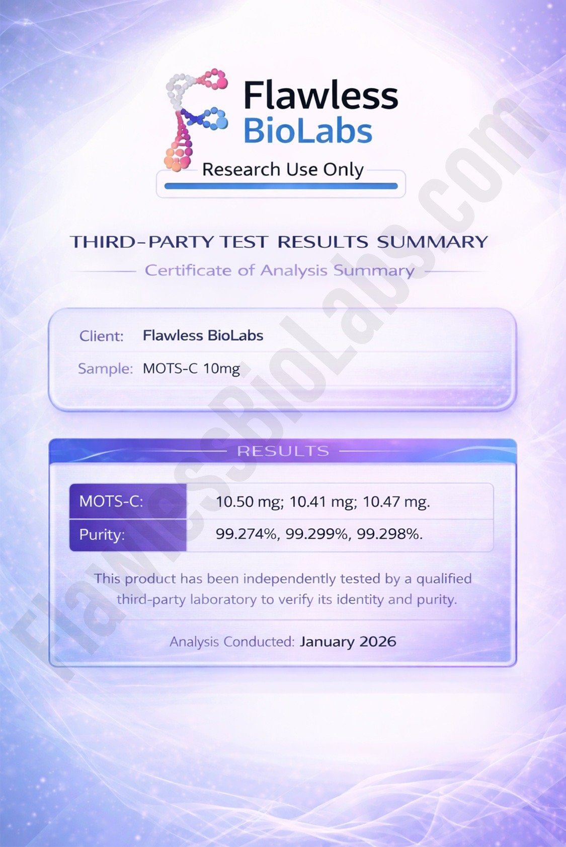 Products from Flawless BioLabs are strictly for laboratory and research use by qualified professionals. They are not pharmaceuticals, dietary supplements, agricultural products, or household items, and must not be mislabeled as such. These chemicals are not intended for human or veterinary use and are exempt from Title 21, Parts 100–740 of the CFR. The information provided is educational, has not been evaluated by the FDA, and is not intended to diagnose, treat, cure, or prevent any health condition.